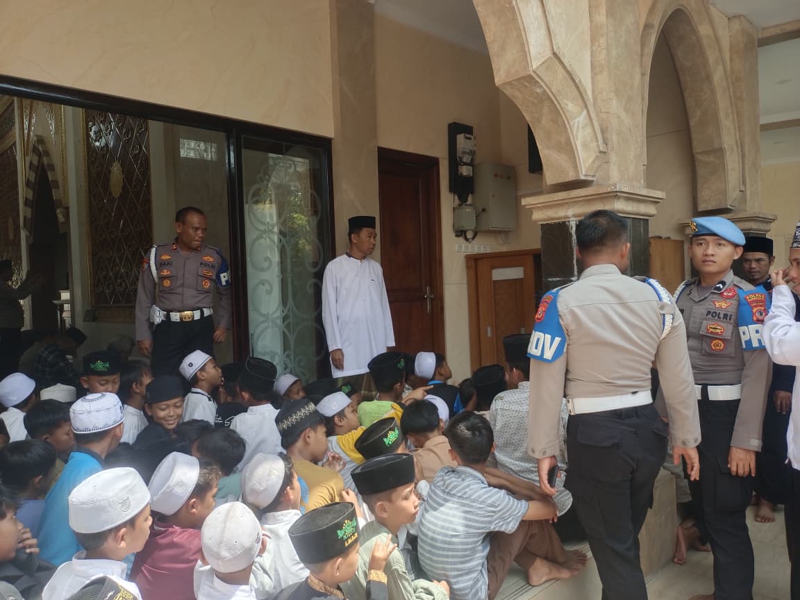 Kegiatan ini diikuti oleh puluhan warga serta anak-anak sekitar masjid. Personel Polres Kuningan turun langsung menyapa masyarakat dan membagikan nasi kotak, sebagai bentuk kepedulian dan kebersamaan.